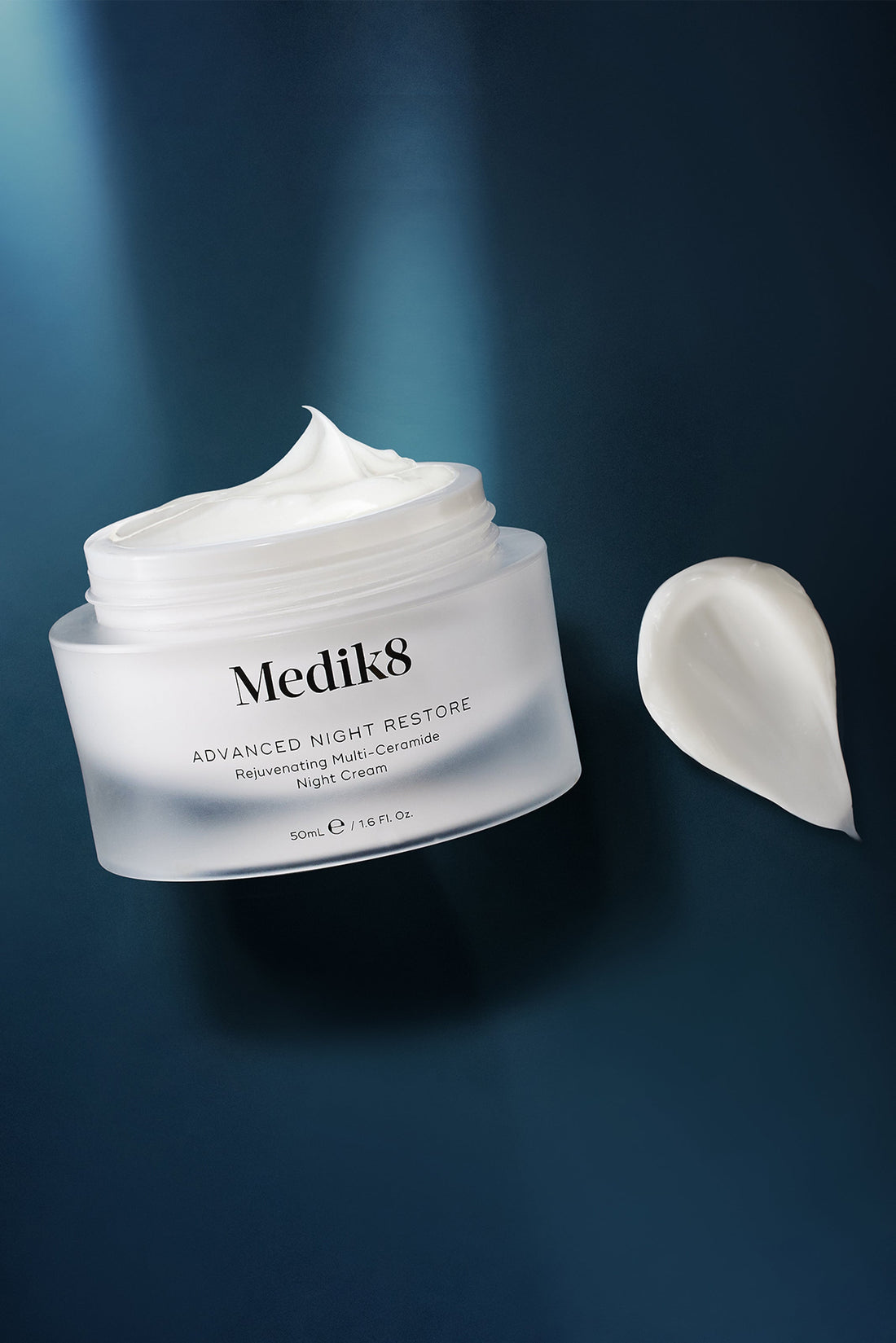 Rejuvenate and restore your skin overnight with Medik8’s signature night cream. Clinically proven to reduce stubborn wrinkles & visibly lift the skin in 7 days[3], Advanced Night Restore is formulated with a powerful blend of ceramides, peptides, and antioxidants to support your skin’s natural repair process. This rich, restorative cream deeply nourishes and firms your skin overnight, enhancing the effects of your evening vitamin A use, for a visibly plump, firm and more youthful appearance by morning.