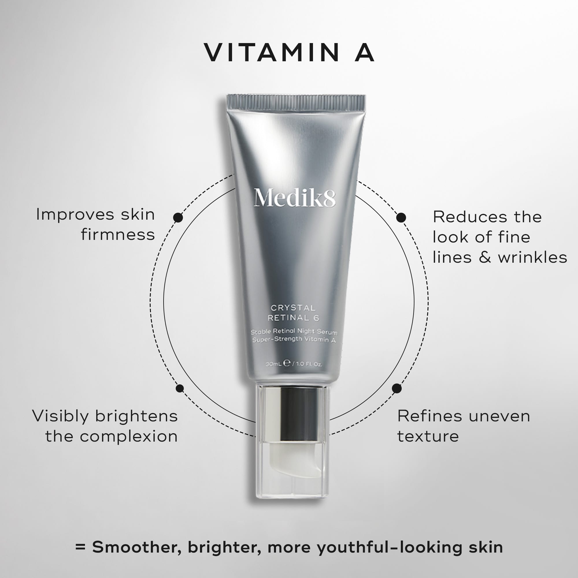 Na Medik8, trabalhamos com 3 formas comprovadas de vitamina A: retinol, retinaldeído (retinal) e retinil retinoato.